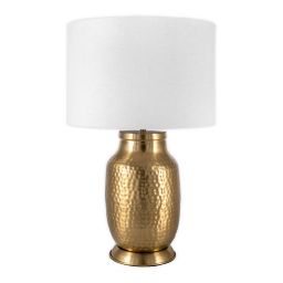 A hammered effect in the base adds eye-catching texture to this table lamp design. Size will vary slightly. This table requires easy assembly just.